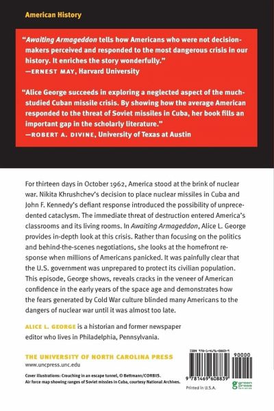 For thirteen days in October 1962, America stood at the brink of nuclear war. Nikita Khrushchev’s decision to place nuclear missiles in Cuba and John F. Kennedy’s defiant response introduced the possibility of unprecedented cataclysm. The immediate threat of destruction entered America’s classrooms and its living rooms. Awaiting Armageddon provides the first in-depth look at this crisis as it roiled outside of government offices, where ordinary Americans realized their government was unprepared to protect either itself or its citizens from the dangers of nuclear war. During the seven days between Kennedy’s announcement of a naval blockade and Khrushchev’s decision to withdraw Soviet nuclear missiles from Cuba, U.S. citizens absorbed the nightmare scenario unfolding on their television sets. An estimated ten million Americans fled their homes; millions more prepared shelters at home, clearing the shelves of supermarkets and gun stores. Alice George captures the irrationality of the moment as Americans coped with dread and resignation, humor and pathos, terror and ignorance. In her examination of the public response to the missile crisis, the author reveals cracks in the veneer of American confidence in the early years of the space age and demonstrates how the fears generated by Cold War culture blinded many Americans to the dangers of nuclear war until it was almost too late.