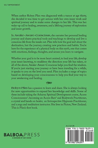 When author Robyn Plim was diagnosed with a tumor at age thirty, she decided it was time to get serious with her own inner work and spiritual journey and to make some changes to her life. This was her wake-up call to healing, awareness, and a lifelong journey of exploration and inner growth. In Awake-Aware-Conscious, she narrates her personal healing journey and shares practical tools and teachings to develop and live a conscious life from the inside out. Plim tells how the goal isn't about the destination, but the journey, creating new practices and habits. You're here for the experience of a physical body on this earth, one that comes with emotions, feelings, thoughts, and senses you learn to navigate. Whether your goal is to be more heart centred, to heal your life, develop your inner knowing, to readdress the direction your life has taken, or all of the above, Awake-Aware-Conscious helps you find the wisdom. If you're just starting your journey or have been traveling for a while, it speaks to you on the level you need. Plim includes a range of topics based on developing your consciousness to help you find your way in your awakening and healing.