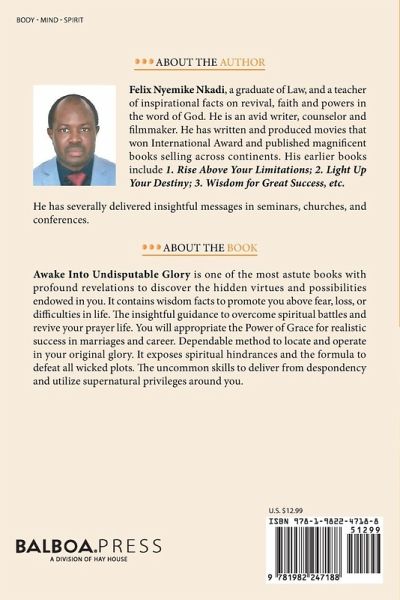 Awake Into Undisputable Glory is one of the most astute books with profound revelations to discover the hidden virtues and possibilities endowed in you. It contains wisdom facts to promote you above fear, loss, or difficulties in life. The insightful guidance to overcome spiritual battles and revive your prayer life. You will appropriate the Power of Grace for realistic success in marriages and career. Dependable method to locate and operate in your original glory. It exposes spiritual hindrances and the formula to defeat all wicked plots. The uncommon skills to deliver from despondency and utilize supernatural privileges around you.
