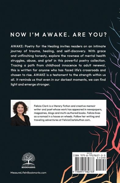 AWAKE: Poetry for the Healing invites readers on an intimate journey of trauma, healing, and self-discovery. With grace and unflinching honesty, explore the rawness of mental health struggles, abuse, and grief in this powerful poetry collection. Tracing a path from childhood innocence to adult renewal, this is written for anyone who has faced life's crossroads and chosen to rise. AWAKE is a testament to the strength within us all. It reminds us that even in our darkest moments, we can find light and emerge stronger. This is the standard black-and-white version.