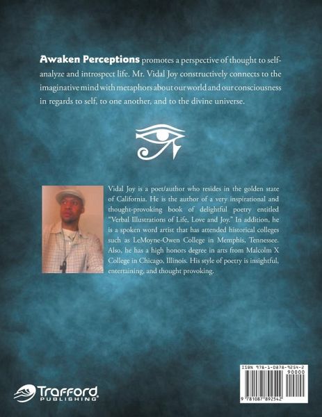 Awaken Perceptions promotes a perspective of thought to self analyze and introspect life. Vidal Joy constructively connects to the imaginative mind with metaphors about our world and our consciousness in regards to self, to one another, and to the divine universe.