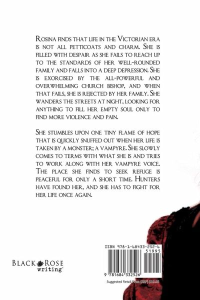 Rosina finds that life in the Victorian era is not all petty coats and charm. She is filled with despair as she fails to reach up to the standards of her well-rounded family and falls into a deep depression. She is exorcised by the all-powerful and overwhelming church bishop, and when that fails, she is rejected by her family. She wanders the streets at night, looking for anything to fill her empty soul only to find more violence and pain. She stumbles upon one tiny flame of hope that is quickly snuffed out when her life is taken by a monster; a vampyre. She slowly comes to terms with what she is and tries to work along with her vampyre voice. The place she finds to seek refuge is peaceful for only a short time. Hunters have found her, and she has to fight for her life once again.
