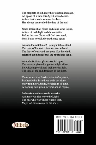 When Jesus left this earth He said He would return and for all to be prepared. However, in order to be prepared one must have at least a general knowledge of what is going to happen. Jesus also told us that He has foretold all things and the Bible does indeed contain all the information needed for preparation. So why do we need these poems? These poems contain nothing new and if everyone was reading God's Word with understanding there would have been no need for these poems to have ever been written. However, because so few people are reading the Bible and because so much misinformation has been attached to Christianity, especially on the subject of eschatology, God has decided in these final days to speak unto man in terse sundry ways. These poems are given as a brief summary of the gospel and the prophets. They are intended to give the reader enough of a review of the Bible to be prepared for that time ahead when Satan and his fallen angels will be back on this earth. These poems contain enough information to allow the reader to recognize the sequence of events when the four winds are released. These poems will provide the reader with the necessary knowledge to recognize and refuse the "mark of the beast" when it is time to make that choice. So that there will be no confusion as to the sequence of events relating to the Second Advent of Christ, let us hear the words of Paul: "---Let no man deceive you by any means: for that day shall not come, except (until) there come a falling away first, and that man of sin be revealed, the son of perdition; who opposeth and exalteth himself above all that is called God, or that is worshipped; so that he as God sitteth in the temple of God, shewing himself that he is God. ---For the mystery of inequity doth already work: only he who now letteth will let, until he be taken out of the way. And then shall that wicked be revealed, whom the Lord shall consume with the spirit of his mouth, and shall destroy with the brightness of his coming: even him, whose coming is AFTER the working of Satan with all power and signs and lying wonders, and with all deceivableness of unrighteousness in them that perish; because they received not the love of the truth, that they might be saved" (2Thess 2:1-10). It is important to note that Satan will come first pretending to be God, or more accurately, the returning Christ and that the real Christ comes after Satan is allowed his "hour" of temptation. This will be a time of testing and only those who receive the love of the truth of God's Word will be able to survive the test. In other words, those who are not familiar with what God has spoken through his Word, the Bible, about this time in history will be like the five virgins who had no oil for their lamps (Mt 25:1-13). The most important truth to know from God's Word about this time ahead is that the false comes first. This piece of information will clear up many misconceptions and misinterpretations of Bible warning scriptures. There is also a false doctrine that has been introduced into the Church within the last 175 years that teaches that true believers will be "raptured" off the earth prior to Satan's allotted time. This is a dangerous concept for it will just make Satan's work of gathering souls to fill the ranks of hell that much easier. The Bible teaches that Christ is only coming back one more time and that is AFTER Satan's allotted time on earth. No one is going anywhere until this time of testing is completed. Bear in mind Satan and his fallen angels will possess supernatural powers and will be capable of deceiving even some of the most knowledgeable and faithful. Are you prepared for that? In the parable of the ten virgins (Mt 25:1-13), Jesus is warning us what will happen if we are not prepared. The use of the word virgins is apropos since Paul has stated that he wants to present the Church to Christ as a chaste virgin (2Cor 11:2). The oil for