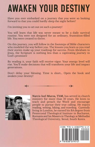 Awaken Your Destiny is a Christian, biblically rooted book about unlocking your potential and living out your destiny. · How many times did you feel that you are not living the life you were designed to live?· How many times you got frustrated when you saw others following their calling and reaching their place of destiny?· How many times have you lost your patience and trust in God and so forfeited your blessing?· How many times you got caught in a cozy comfort zone and lost sight of the important things? In Awaken Your Destinyyou will learn that life was never meant to be a daily survival routine. You were not designed for an ordinary, frustration-filled life. You were created to thrive. On this journey, you will follow in the footsteps of Bible characters who modeled the way before you. The lessons you learn as you read their stories make up your roadmap for success. From Abraham to Jesus, the Scripture is nothing less than a captivating journey to God's promises! Awaken Your Destinyis different than other books in this genre because it springs from the biblical overarching narrative. I do not use the Bible as a source of illustrations for my points, but I go from the Bible and find the principles. It is unique because it reflects my own journey of faith. In Awaken Your Destiny, through metaphors and biblical stories you will learn how to: ¿ Break free of Routine ¿ Find your Why ¿ Redefine your Identity ¿ Focus on Future and Reconcile with the Past ¿ Keep Holding to your Dream despite Adverse Circumstances ¿ Overcome Temptations that may Ruin Your Dream ¿ Live a Flourishing Life of Service ¿ See your Story in a Greater Narrative Follow the advice in this book and you will surely bring your faith to success! Your faith will receive vigor. Your energy level will rise. You'll make decisions that will transform your life and impact generations. What is still holding you back from grabbing God's promises for your life? Awaken your destiny now!