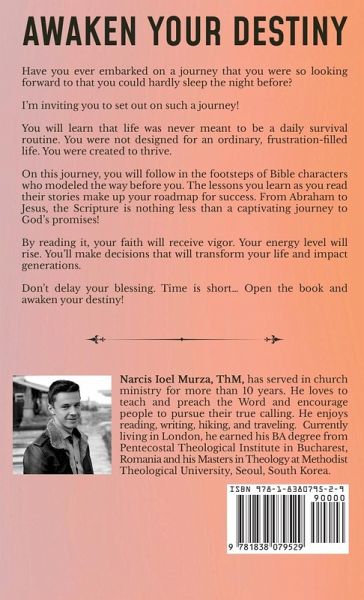 Awaken Your Destiny is a Christian, biblically rooted book about unlocking your potential and living out your destiny. · How many times did you feel that you are not living the life you were designed to live?· How many times you got frustrated when you saw others following their calling and reaching their place of destiny?· How many times have you lost your patience and trust in God and so forfeited your blessing?· How many times you got caught in a cozy comfort zone and lost sight of the important things? In Awaken Your Destinyyou will learn that life was never meant to be a daily survival routine. You were not designed for an ordinary, frustration-filled life. You were created to thrive. On this journey, you will follow in the footsteps of Bible characters who modeled the way before you. The lessons you learn as you read their stories make up your roadmap for success. From Abraham to Jesus, the Scripture is nothing less than a captivating journey to God's promises! Awaken Your Destinyis different than other books in this genre because it springs from the biblical overarching narrative. I do not use the Bible as a source of illustrations for my points, but I go from the Bible and find the principles. It is unique because it reflects my own journey of faith. In Awaken Your Destiny, through metaphors and biblical stories you will learn how to: ¿ Break free of Routine ¿ Find your Why ¿ Redefine your Identity ¿ Focus on Future and Reconcile with the Past ¿ Keep Holding to your Dream despite Adverse Circumstances ¿ Overcome Temptations that may Ruin Your Dream ¿ Live a Flourishing Life of Service ¿ See your Story in a Greater Narrative Follow the advice in this book and you will surely bring your faith to success! Your faith will receive vigor. Your energy level will rise. You'll make decisions that will transform your life and impact generations. What is still holding you back from grabbing God's promises for your life? Awaken your destiny now!