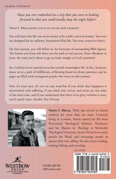 Have you ever embarked on a trip that you were so looking forward to that you could hardly sleep the night before? Narcis I. Murza invites you to set out on such a journey! You will learn that life was never meant to be a daily survival routine. You were not designed for an ordinary, frustration-filled life. You were created to thrive. On this journey, you will follow in the footsteps of outstanding Bible figures. The lessons you learn will show you the path to real success. From Abraham to Jesus, the road you're about to go on leads straight to God's promises! See, God has never wanted you to live a small, meaningless life. In fact, Scripture draws us to a path of fulfillment, of blessing based on divine promises and its pages are filled with courageous people who went on this journey. Now it's your turn. It's not an easy road but if you think that happiness is intertwined with suffering, if you think that victory and sweat are two sides of the same coin, and if you understand that there is no glory without a cross, you'll surely enjoy Awaken Your Destiny.