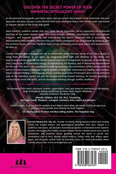 Awaken Your Immortal Intelligent Heart by Carmel Glenane B.A. Dip. Ed. In Part I: DISCOVER THE SECRET POWER OF YOUR HEART'S INTELLIGENCE: New scientific evidence reveals that your heart has an important role in supporting the Endocrine function of the entire human body. Read more as Glenane & Malcolm explore spiritually and scientifically the heart's important role in activating the Mitochondrial DNA (MtDNA). Discover how your heart's intelligence can be activated by initiating your five primary senses. Learn how The Black Heart, brings primordial power, pure peace and acceptance of all there is. Carmel Glenane does a magnificent job to remind the world that the center of our life is found by living from the center of our heart. In a time where consciousness is often mistaken for the mind, or even brain activity, Glenane presents a daily practice of heart-centered healing where weaving science, ancient spiritual disciplines, wisdom studies, and exercises of activation, provides the reader direct access to deep, personal growth. By integrating both light and shadows of the heart, this step-by-step process grounds the initiate toward a journey of realignment of purpose, of remembering one's true value, of rejuvenating energy, of regenerating the mystery, and of resourcing opportunities for the soul. Heart-centered healing is the language of love, and the application of Glenane's work will be useful not only to the individual reader, but also for couples working toward intimacy, for families wanting to communicate more effectively, and for businesses working through conflict resolution. In Part II: THE IMMORTAL WOMAN 'The Immortal Woman' can be read sequentially or by opening up to any page for her message to be reflected upon for your day and see what 'She' reveals to you for your journey right now. Close your eyes, take a deep breath in, ask your question, then open the book up to a page. This book is your personal 'living guide' as the ancient secrets are revealed to you day by day. 'The Immortal Woman' tests and challenges your previously held definition of Love and takes you to a space of truth for yourself where all of life becomes a multi-dimensional experience.