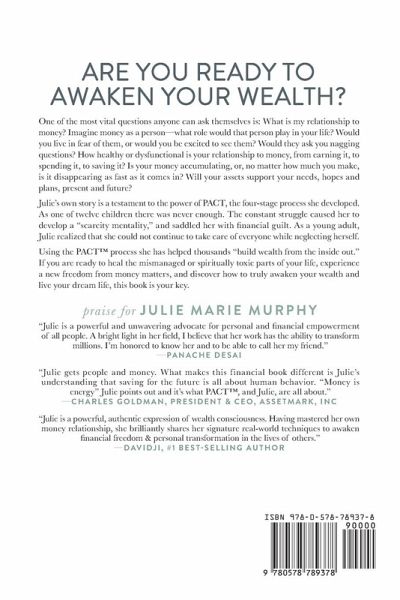 Too many people have fears and other unhealthy emotions around money. Whether you were born rich, poor or somewhere in-between, money has always been an integral part of your life. However, too many people have fears and other unhealthy emotions around money. These debilitating beliefs are most often subconscious, shaped by a lifetime of early experiences seen through other people-not based on objective reality. Can you break free from these restrictive beliefs and emotions, be able to "dream big"-and actually accomplish your hopes and dreams? The answer is yes: Now, finally, there is a way to harness the powerful energy around money and build real wealth. Julie Marie Murphy's new book, Awaken Your Wealth: Creating a PACT to Optimize Your Money and Your Life, is a common-sense approach to financial goals. Her easy-to-follow guide will show you how to create a life of financial independence and freedom. Awaken Your Wealth is a companion to Julie Murphy's award-winning 2008 best-seller, The Emotion Behind Money: Building Wealth from the Inside Out. A highly regarded CERTIFIED FINANCIAL PLANNER® (CFP), it was in the process of healing her own debilitating beliefs that Julie discovered we all create our own 'stories' or expectations about money and wealth. Julie's 'story' was that there was only a limited supply to go around, and that only certain kinds of high-born people or those who "struck it rich" could ever become wealthy. Once she recognized the negative power of these subconscious beliefs, Julie was able to unlearn her own limiting attitudes. In the process she developed the PACT system. Based on that system, Julie has built a lifetime of emotional and spiritual satisfaction in her own life-and attracted extraordinary prosperity. After seeing how the PACT system worked for her clientele, her desire to share it became her life's work. Now the keys to Julie Murphy's evolution are offered to you, complete with relatable anecdotes and thought-provoking, game-changing exercises. In Awaken Your Wealth Julie will show you: · How to build real wealth by changing your own story or attitude around money. · How to set yourself free from limiting beliefs. · How to develop a fresh approach to money and wealth. · How to create a new and positive energy that allows money to find you. · How to set yourself on the path to true abundance and peace-of-mind. Julie Murphy's book offers you the means to achieve your financial goals more rapidly than you ever thought possible. Whether you are just starting out or are near retirement, the amazing PACT system puts within reach the fulfillment and financial freedom you richly deserve. Begin your journey to Awaken Your Wealth today.