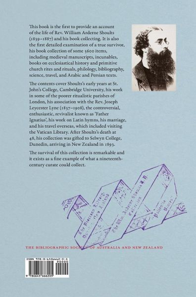 This book is the first to provide an account of the life of Rev. William Arderne Shoults (1839-1887) and his book collecting. It is also the first detailed examination of a true survivor, his book collection of some 5600 items, including medieval manuscripts, incunables, books on ecclesiastical history and primitive church rites and rituals, philology, bibliography, science, travel, and Arabic and Persian texts. The contents cover Shoults's early years at St. John's College, Cambridge University, his work in some of the poorer ritualistic parishes of London, his association with the Rev. Joseph Leycester Lyne (1837-1908), the controversial, enthusiastic, revivalist known as 'Father Ignatius', his work on Latin hymns, his marriage, and his travel overseas, which included visiting the Vatican Library. After Shoults's death at 48, his collection was gifted to Selwyn College, Dunedin, arriving in New Zealand in 1893. The survival of this collection is remarkable and it exists as a fine example of what a nineteenth-century curate could collect.