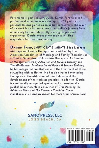Part memoir, part recovery guide, Darrin Ford weaves his professional experience as a therapist of 19 years with personal lessons gained as an addict in recovery. His journey has resulted in a mindfulness practice that benefits all those who believe they have been left fundamentally broken because they are addicts. This book helps the addict gain a compassionate awareness that they are not "broken".