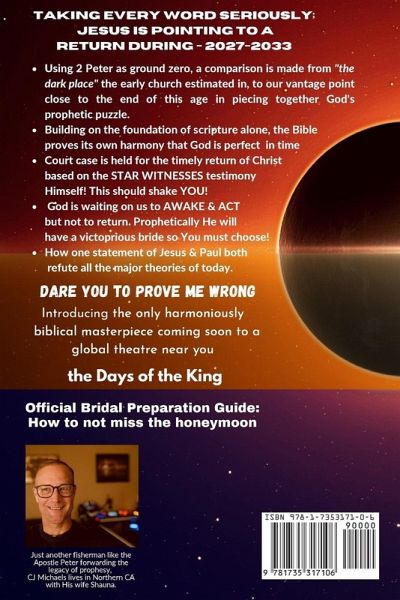 Awakening Glory is a comprehensive look at how God working throughout history both concealed and now is revealing His story for us who believe Sovereignly. After 10 years of arguing not to do this, I spent the next 10 years on a quest to harmonizes all things prophetic based on 2-3 witnesses from scripture as the standard should be for prophecy. In making a court case for the timely return of Christ based on the STAR WITNESSES testimony Himself I believed all time signatures in scripture are given for a reason, as types and shadows leading us to confirm a period of time designed by God for His return. Heck, Jesus says Himself, "every word" matters! Following 2 Peter section by section, we find everything we need to remove and see the truth of our future. Filled with many charts and helpful pointers, the authors intent is for us all as a church to weigh the landscape of our present vantage point in seeing the Day dawn on the revelation of God's word and be prepared as His bride.