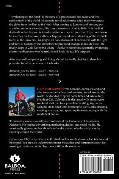 "Awakening on the Road" is the story of a professional risk-taker and free-spirit citizen of the world whose epic travel adventures wind their way across the globe from the East to the West. After moving to London and burning out at a telecommunications job, Filip buys a one-way ticket to Italy. It is the first destination that begins his transformative journey to more than fifty countries as he searches for true love, authentic happiness and understanding of the invisible forces of the universe. His story is an honest account of encounters with the light and dark of humanity that contribute to profound changes in his life view. He finally stops in Cali, Colombia where - thanks to numerous spiritually awakening events- he discovers who he truly is and finds his real life purpose. After years of backpacking and living abroad he finally decides to share his powerful travel experiences in the books: Awakening on the Road-Book 1-The East Awakening on the Road-Book 2-The West