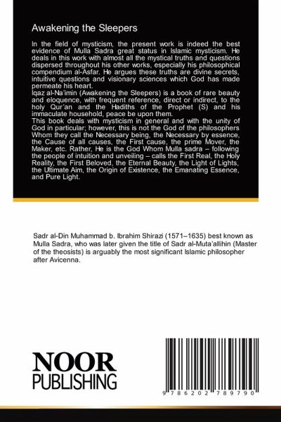 In the field of mysticism, the present work is indeed the best evidence of Mulla Sadra great status in Islamic mysticism. He deals in this work with almost all the mystical truths and questions dispersed throughout his other works, especially his philosophical compendium al-Asfar. He argues these truths are divine secrets, intuitive questions and visionary sciences which God has made permeate his heart.Iqaz al-Na'imin (Awakening the Sleepers) is a book of rare beauty and eloquence, with frequent reference, direct or indirect, to the holy Qur'an and the Hadiths of the Prophet (S) and his immaculate household, peace be upon them.This book deals with mysticism in general and with the unity of God in particular; however, this is not the God of the philosophers Whom they call the Necessary being, the Necessary by essence, the Cause of all causes, the First cause, the prime Mover, the Maker, etc. Rather, He is the God Whom Mulla sadra - following the people of intuition and unveiling -calls the First Real, the Holy Reality, the First Beloved, the Eternal Beauty, the Light of Lights, the Ultimate Aim, the Origin of Existence, the Emanating Essence, and Pure Light.