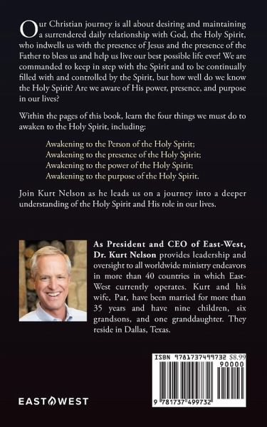 Our Christian journey is all about desiring and maintaining a surrendered daily relationship with God, the Holy Spirit, who indwells us with the presence of Jesus and the presence of the Father to bless us and help us live our best possible life ever! We are commanded to keep in step with the Spirit and to be continually filled with and controlled by the Spirit, but how well do we know the Holy Spirit? Are we aware of His power, presence, and purpose in our lives? Within the pages of this book, learn the four things we must do to awaken to the Holy Spirit, including: Awakening to the Person of the Holy Spirit; Awakening to the presence of the Holy Spirit; Awakening to the power of the Holy Spirit; Awakening to the purpose of the Holy Spirit. Join Kurt Nelson as he leads us on a journey into a deeper understanding of the Holy Spirit and His role in our lives.