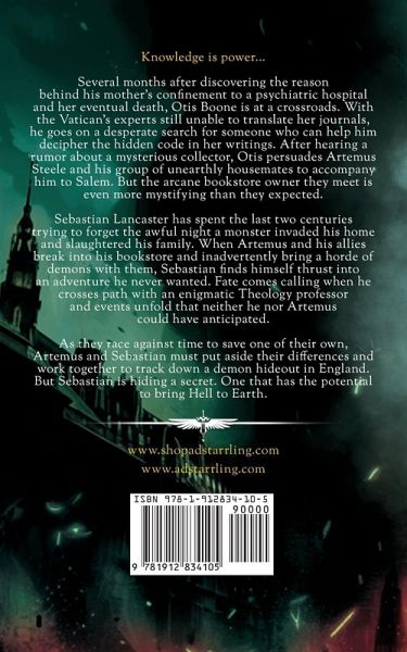 Knowledge is power... Several months after discovering the real reason behind his mother’s confinement to a psychiatric hospital and her eventual death, Otis Boone is at a crossroads. With the Vatican's experts still unable to translate her journals, he goes on a desperate search for someone who can help him decipher the hidden code in her writings. After hearing a rumor about a mysterious collector, Otis persuades Artemus Steele and his group of unearthly housemates to accompany him to Salem. But the arcane bookstore owner they meet is even more mystifying than they expected. Sebastian Lancaster has spent the last two centuries trying to forget the awful night a monster invaded his home and slaughtered his family. When Artemus and his allies break into his bookstore and inadvertently bring a horde of demons with them, Sebastian finds himself thrust into an adventure he never wanted. Fate comes calling when he crosses path with an enigmatic Theology professor and events unfold that neither he nor Artemus could have anticipated. As they race against time to save one of their own, Artemus and Sebastian must put aside their differences and work together to track down a demon hideout in England. But Sebastian is hiding a secret. One that has the potential to bring Hell to Earth.