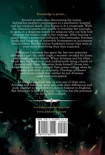 Knowledge is power... Several months after discovering the real reason behind his mother's confinement to a psychiatric hospital and her eventual death, Otis Boone is at a crossroads. With the Vatican's experts still unable to translate her journals, he goes on a desperate search for someone who can help him decipher the hidden code in her writings. After hearing a rumor about a mysterious collector, Otis persuades Artemus Steele and his group of unearthly housemates to accompany him to Salem. But the arcane bookstore owner they meet is even more mystifying than they expected. Sebastian Lancaster has spent the last two centuries trying to forget the awful night a monster invaded his home and slaughtered his family. When Artemus and his allies break into his bookstore and inadvertently bring a horde of demons with them, Sebastian finds himself thrust into an adventure he never wanted. Fate comes calling when he crosses path with an enigmatic Theology professor and events unfold that neither he nor Artemus could have anticipated. As they race against time to save one of their own, Artemus and Sebastian must put aside their differences and work together to track down a demon hideout in England. But Sebastian is hiding a secret. One that has the potential to bring Hell to Earth.