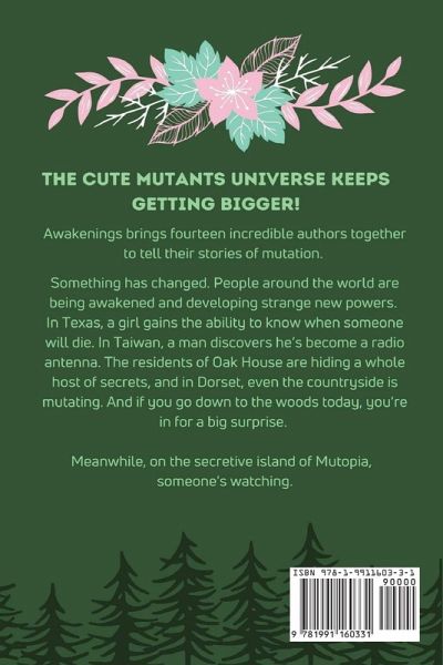 The Cute Mutants Universe keeps getting bigger! Awakenings brings fourteen incredible authors together to tell their stories of mutation. Featuring all-new original stories from: Shelly Page, Elle Tesch, Andy Perez, Hsinju Chen, Shannon Ives, Melody Robinette, Astra Daye, Yves Donlon, E.M. Anderson, Hester Steel, Monica Gribouski, Charlotte Hayward, Amanda M. Pierce, and Emma Jun. Something has changed. People around the world are being awakened and developing strange new powers. In Texas, a girl gains the ability to know when someone will die. In Taiwan, a man discovers he's become a radio antenna. The residents of Oak House are hiding a whole host of secrets, and in Dorset, even the countryside is mutating. And if you go down to the woods today, you're in for a big surprise. Meanwhile, on the secretive island of Mutopia, someone's watching.