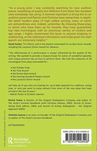 'Patrick and Christine have researched, in depth, the latest modern plays of high calibre writing, many of which are extraordinary and, indeed, unfamiliar ... I highly recommend this book to anyone studying or auditioning, as the individual information and notes given for each speech are immensely helpful.' - David Suchet