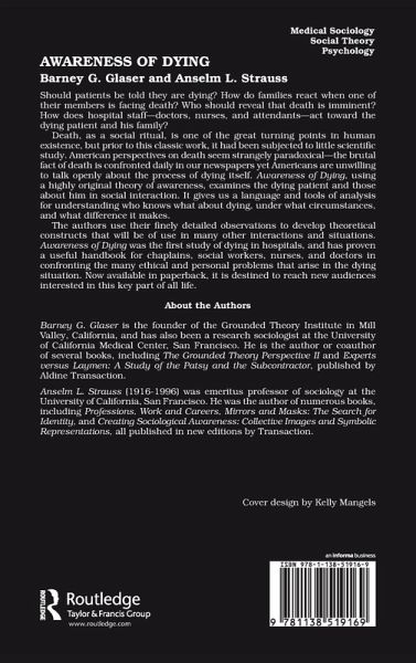 "Awareness of Dying" gives us a language and tools of analysis for understanding who knows what about dying, under what circumstances, and what difference it makes. It has proven a useful handbook for chaplains, social workers, nurses, and doctors in confronting the many ethical and personal problems that arise in dying.
