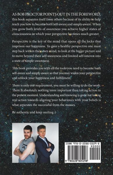 As Bob Proctor points out in the forward, this book separates itself from others because of its ability to help teach you how to become both self-aware and simply-aware. When you grow both levels of awareness you achieve higher states of consciousness in which your perspective becomes much greater. Perspective is the key of the mind that opens all the locks that imprison our happiness. To gain a healthy perspective one must step back within their own mind, to look at the bigger picture and to move beyond their self-awareness and limited self-interest into a state of simple-awareness. This book provides you with all the tools you need to become both self-aware and simply-aware so that you may widen your perspective and unlock your happiness and fulfillment. There is only one requirement, you must be willing to do the work. There is absolutely nothing more important than taking action in the present moment. Understanding and knowing is great but taking real action towards aligning your behaviours with your beliefs is what separates the successful from the masses. Be authentic and keep smiling :)