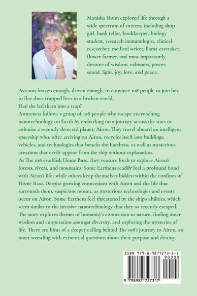 The science of Project Hail Mary meets the spiritual undertones of A Psalm for the Wild-Built. The world-building of Planetfall meets the character-building of The Time Traveler's Wife. A story of beauty and light, doubt and hope, adversity and victory, Awareness is the first book in the trilogy, The Airon Chronicles, a spiritual science fiction adventure, filled with space travel, spiritual insights, and blossoming awareness, where characters wrestle with their inner guides and strive to recognize truth amidst the suspicion of treachery. Escaping Earthen culture that is being overrun by A.I. nanotechnology, 108 strong women and men board a space ship which, unbeknownst to anyone, is brimming with A.I. Their shared goal is to reach a distant planet, Airon, in search of a meaningful purpose to fill their increasingly empty lives. In their quest of finding their purpose in life, fears overwhelm them; they must first vanquish the demons within themselves. As they explore Airon, alien mysteries swirl to engulf The 108 and threaten to turn one against the other. Their search for the truth is muddied by an insidious suspicion of treachery. A lure so powerful it cannot be ignored. An A.I. technology so threatening it cannot be endured. An awareness so enormous it cannot be imagined. Why has Airon called The 108? Filled with strong women and inspiring men undertaking an adventure of a lifetime, Awareness can help your heart sing or ignite your worst fears. It all depends on your inner guide.