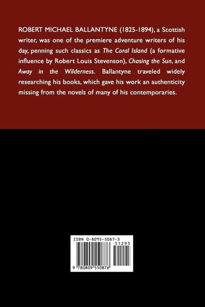 Robert Michael Ballantyne (24 April 1825 - 8 February 1894) was a Scottish author of juvenile fiction who wrote more than 100 books. He was also an accomplished artist, and exhibited some of his water-colours at the Royal Scottish Academy. In 1847 Ballantyne returned to Scotland to discover that his father had died. He published his first book the following year, Hudson's Bay: or, Life in the Wilds of North America, and for some time was employed by the publishers Messrs Constable. In 1856 he gave up business to focus on his literary career, and began the series of adventure stories for the young with which his name is popularly associated.[1] The Young Fur-Traders (1856), The Coral Island (1857), The World of Ice (1859), Ungava: a Tale of Eskimo Land (1857), The Dog Crusoe (1860), The Lighthouse (1865), Fighting the Whales (1866), Deep Down (1868), The Pirate City (1874), Erling the Bold (1869), The Settler and the Savage (1877), and more than 100 other books followed in regular succession, his rule being to write as far as possible from personal knowledge of the scenes he described.[1] The Gorilla Hunters. A tale of the wilds of Africa (1861) shares three characters with The Coral Island: Jack Martin, Ralph Rover and Peterkin Gay. Here Ballantyne relied factually on Paul du Chaillu's Exploration in Equatorial Guinea, which had appeared early in the same year The Coral Island is the most popular of the Ballantyne novels still read and remembered today,[7] but because of one mistake he made in that book, in which he gave an incorrect thickness of coconut shells, he subsequently attempted to gain first-hand knowledge of his subject matter. For instance, he spent some time living with the lighthouse keepers at the Bell Rock before writing The Lighthouse, and while researching for Deep Down he spent time with the tin miners of Cornwall.[1] In 1866 Ballantyne married Jane Grant (c. 1845 - c. 1924), with whom he had three sons and three daughters