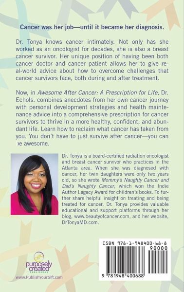 Cancer was her job-until it became her diagnosis. Dr. Tonya knows cancer intimately. Not only has she worked as an oncologist for decades, she is also a breast cancer survivor. Her unique position of having been both cancer doctor and cancer patient allows her to give real-world advice about how to overcome challenges that cancer survivors face, both during and after treatment. Now, in Awesome after Cancer: A Prescription for Life, Dr. Tonya combines anecdotes from her own cancer journey with personal development strategies and health maintenance advice into a comprehensive prescription for cancer survivors to thrive in a more healthy, confident, and abundant life. Learn how to reclaim what cancer has taken from you. You don't have to just survive after cancer-you can be awesome.