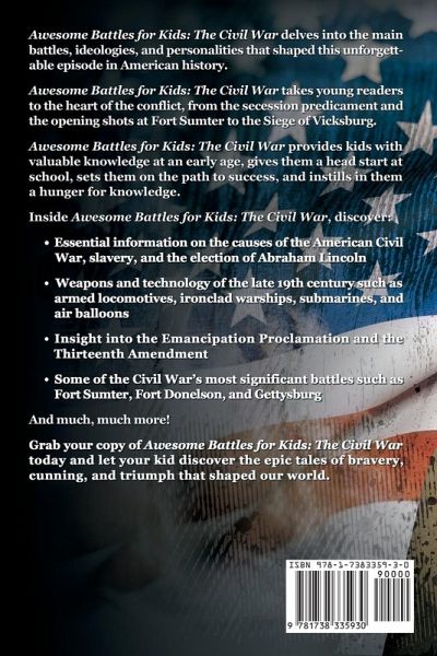 Awesome Battles for Kids: The Civil War delves into the main battles, ideologies, and personalities that shaped this unforgettable episode in American history. Awesome Battles for Kids: The Civil War takes young readers to the heart of the conflict, from the secession predicament and the opening shots at Fort Sumter to the Siege of Vicksburg. Awesome Battles for Kids: The Civil War provides kids with valuable knowledge at an early age, gives them a head start at school, sets them on the path to success, and instills in them a hunger for knowledge. Inside Awesome Battles for Kids: The Civil War, discover: Essential information on the causes of the American Civil War, slavery, and the election of Abraham Lincoln Weapons and technology of the late 19th century such as armed locomotives, ironclad warships, submarines, and air balloons Insight into the Emancipation Proclamation and the Thirteenth Amendment Some of the Civil War's most significant battles such as Fort Sumter, Fort Donelson, and Gettysburg And much, much more! Grab your copy of Awesome Battles for Kids: The Civil War today and let your kid discover the epic tales of bravery, cunning, and triumph that shaped our world.