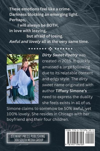 Poetry is notoriously known for being romantic and beautiful. Author Tiffany Simone says she prefers to surprise people with her words, to shock their senses. With her fourth book, she continues to do just that. Awful Lovely is perhaps Dirty Sweet Poetry's most stripped-down poetic collection to date. Writing as Dirty Sweet Poetry since 2015, Tiffany's ability to swing from endearing to erotic makes her relatable. She invites you in, and slams you up against the wall with a fury that is somehow both gentle and rough. "It's always been about a sense of duality- the yin and the yang. It's my trying (and failing) to find that balance within. I've never been all or nothing. I swear I live in a gray area."Everyone has multiple sides to them to some extent. Relationships bring out the light and the dark, our beauty along with our demons. We can be the very worst versions of ourselves yet, look pretty while doing it. Fear will make us run. Fear can make us stay. Love paints gorgeous futures. Love can ruin your life. Awful Lovely continues the Dirty Sweet name but shows a darker side. It's the things we don't dare say out loud. Running and coming home, or is it... coming home and then running away? As the author says, it has always been about duality, hence the Dirty Sweet name. "The writer in me turns pretty on paper. I will wear baby pink when I hurt you."-Tiffany Simone