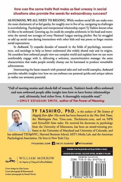 Psychologist and interpersonal relationship expert Ty Tashiro knows what it's like to be awkward. Growing up, he could do math in his head and memorize the earned run averages of every National League starting pitcher. But he couldn't pour liquids without spilling and habitually forgot to bring his glove to Little League games. In Awkward, he unpacks decades of research into human intelligence, neuroscience, personality, and sociology to help us better understand this widely shared trait. He explores its nature vs. nurture origins, considers how the awkward view the world, and delivers a welcome counterintuitive message: the same characteristics that make people socially clumsy can be harnessed to produce remarkable achievements.