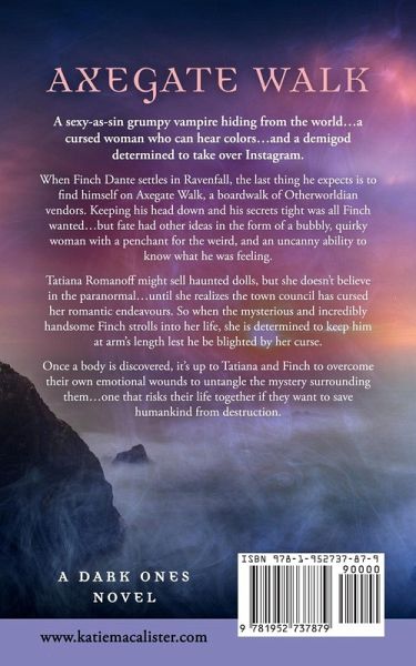 A sexy-as-sin grumpy vampire hiding from the world...a cursed woman who can hear colors...and a demigod determined to take over Instagram. When Finch Dante settles in Ravenfall, the last thing he expects is to find himself on Axegate Walk, a boardwalk of Otherworldian vendors. Keeping his head down and his secrets tight was all Finch wanted...but fate had other ideas in the form of a bubbly, quirky woman with a penchant for the weird, and an uncanny ability to know what he was feeling. Tatiana Romanoff might sell haunted dolls, but she doesn't believe in the paranormal...until she realizes the town council has cursed her romantic endeavours. So when the mysterious and incredibly handsome Finch strolls into her life, she is determined to keep him at arm's length lest he be blighted by her curse. Once a body is discovered, it's up to Tatiana and Finch to overcome their own emotional wounds to untangle the mystery surrounding them...one that risks their life together if they want to save humankind from destruction. Fast, funny, and filled with paranormal romcom goodness - dive into the lastest book in the New York Times bestselling Dark Ones series today! Just be sure to stay away from haunted dolls...