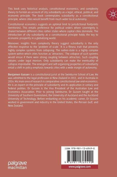 This book uses historical analysis, constitutional economics, and complexity theory to furnish an account of city subsidiarity as a legal, ethical, political, and economic principle. The book contemplates subsidiarity as a constitutional principle, where cities would benefit from much wider local autonomy.