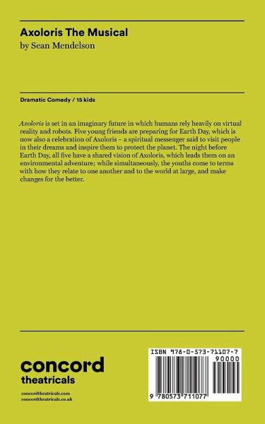 Axoloris is set in an imaginary future in which humans rely heavily on virtual reality and robots. Five young friends are preparing for Earth Day, which is now also a celebration of Axoloris - a spiritual messenger said to visit people in their dreams and inspire them to protect the planet. The night before Earth Day, all five have a shared vision of Axoloris, which leads them on an environmental adventure; while simultaneously, the youths come to terms with how they relate to one another and to the world at large, and make changes for the better.