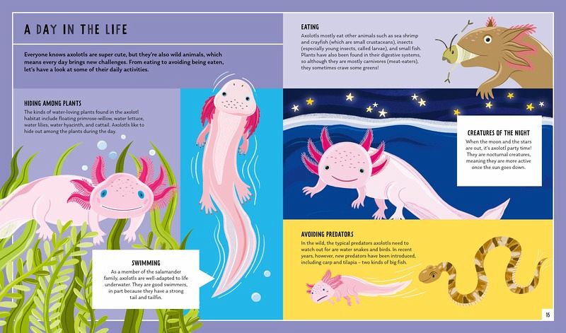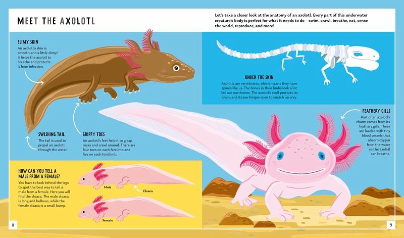 An illustrated guide to cute axolotls written by Harvard expert Dr Jessica L. Whited.