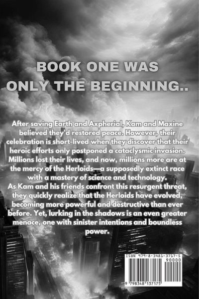 Death of their species is guaranteed. Unless... After saving Earth and Axpherial, Kam and Maxine believed they'd restored peace. However, their celebration is short-lived when they discover that their heroic efforts only postponed a cataclysmic invasion. Millions lost their lives, and now, millions more are at the mercy of the Herloids-a supposedly extinct race with a mastery of science and technology. As Kam and his friends confront this resurgent threat, they quickly realize that the Herloids have evolved, becoming more powerful and destructive than ever before. Yet, lurking in the shadows is an even greater menace, one with sinister intentions and boundless power.