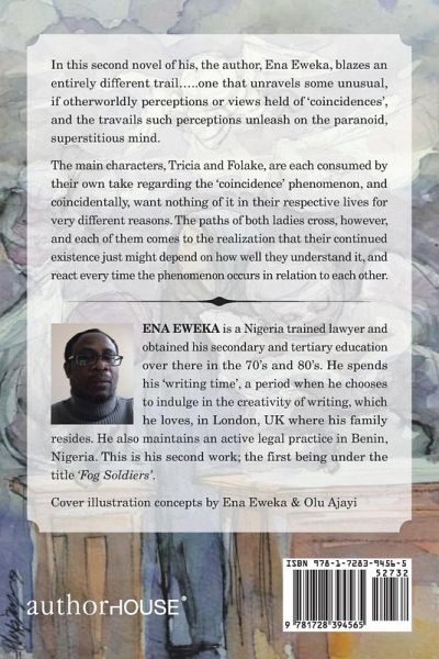 In this second novel of his, the author, Ena Eweka, blazes an entirely different trail.....one that unravels some unusual, if otherworldly perceptions or views held of 'coincidences', and the travails such perceptions unleash on the paranoid, superstitious mind. The main characters, Tricia and Folake, are each consumed by their own take regarding the 'coincidence' phenomenon, and coincidentally, want nothing of it in their respective lives for very different reasons. The paths of both ladies cross, however, and each of them comes to the realization that their continued existence just might depend on how well they understand it, and react every time the phenomenon occurs in relation to each other.