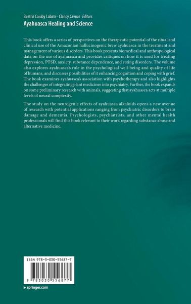 1. Ayahuasca as an Unusually Versatile Therapeutic Agent: From Molecules to Meta-cognition and Back.- 2. New Evidence of the Antidepressant Effects of Ayahuasca.- 3. Psychedelic Medicines and Their Role in Shifting the Paradigm from Pharmacological Substitution Towards Transformation-Based Psychiatry.- 4. Ayahuasca and its Potential Role in Psychotherapy.- 5. A Qualitative Assessment of Risks and Benefits of Ayahuasca for Trauma Survivors.- 6. Ayahuasca and Childhood Trauma: Potential Therapeutic Applications and Risks.- 7. Ayahuasca and Cognition.- 8. Healing with the Brew: Ayahuasca's Reconfiguration of "Addiction".- 9. Ayahuasca Ritual Healing as an Addiction Treatment in Catalonia: Combining Cognitive and Cultural Perspectives.- 10. Perspectives on Healing and Recovery from Addiction with Ayahuasca-Assisted Therapy Among Members of an Indigenous Community in Canada.- 11. Ayahuasca as a Healing Tool Along the Continuum ofRecovery from Eating Disorders.- 12. The Therapeutic Use of Ayahuasca in Grief.- 13.Depression, Anxiety and Sorcery: An Interview with Shipibo Healer Jose Lopez.