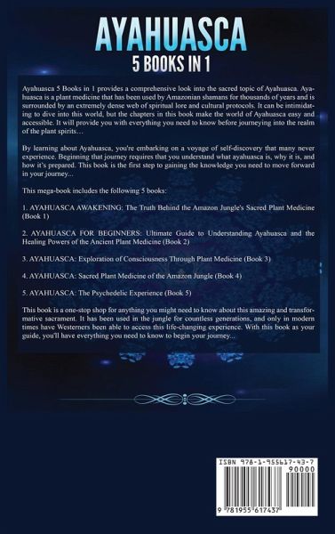 Ayahuasca 5 Books in 1 provides a comprehensive look into the sacred topic of Ayahuasca. Ayahuasca is a plant medicine that has been used by Amazonian shamans for thousands of years and is surrounded by an extremely dense web of spiritual lore and cultural protocols. It can be intimidating to dive into this world, but the chapters in this book make the world of Ayahuasca easy and accessible. It will provide you with everything you need to know before journeying into the realm of the plant spirits... By learning about Ayahuasca, you're embarking on a voyage of self-discovery that many never experience. Beginning this journey requires that you understand what ayahuasca is, why it is, and how it's prepared. This book is the first step to gaining the knowledge you need to move forward in your journey... This five-in-one series includes the following 5 books: 1. AYAHUASCA AWAKENING: The Truth Behind the Amazon Jungle's Sacred Plant Medicine (Book 1) 2. AYAHUASCA FOR BEGINNERS: Ultimate Guide to Understanding Ayahuasca and the Healing Powers of the Ancient Plant Medicine (Book 2) 3. AYAHUASCA: Exploration of Consciousness Through Plant Medicine (Book 3) 4. AYAHUASCA: Sacred Plant Medicine of the Amazon Jungle (Book 4) 5. AYAHUASCA: The Psychedelic Experience (Book 5) In this book you'll learn: What is Ayahuasca? The Origin of Ayahuasca History of Ayahuasca and how it became known in the West How to make and prepare Ayahuasca Ayahuasca for development What Ayahuasca is used for Different plants of Ayahuasca The power of Ayahuasca How Ayahuasca is traditionally administered Different uses of Ayahuasca and why one would choose a certain use The practical aspects of Ayahuasca The science behind Ayahuasca Effects of Ayahuasca in the body Controversy around Ayahuasca Pharmacology of Ayahuasca Shamanism and Ayahuasca The mysteries of Ayahuasca And so much more! This book is a one-stop shop for anything you might need to know about this amazing and transformative sacrament. It has been used in the jungle for countless generations, and only in modern times have Westerners been able to access this life-changing experience. With this book as your guide, you'll have everything you need to know to begin your journey! Grab your copy of Ayahuasca now!