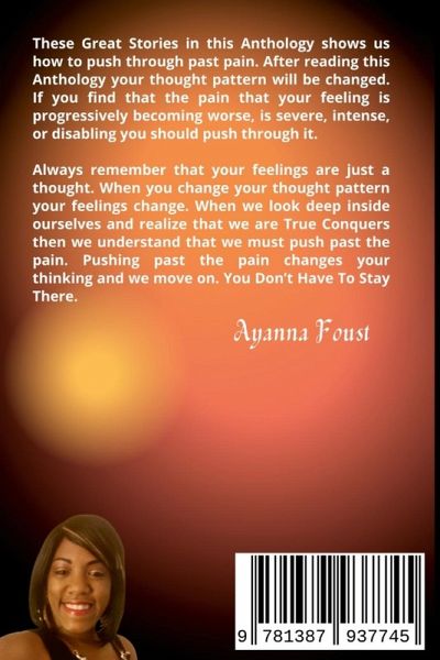 These Great Stories in this Anthology show us how to push through past pain. After reading this Anthology your thought pattern will be changed. If you find that the pain that you feeling is progressively becoming worse, is severe, intense, or disabling you should push through it. Always remember that your feelings are just a thought. When you change your thought pattern your feelings change. When we look deep inside ourselves and realize that we are True Conquers then we understand that we must push past the pain. Pushing past the pain changes your thinking and we move on. You Don't Have To Stay There.