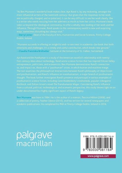 Ayn Rand and the Posthuman is a study of the American novelist's relationship with twenty-first-century ideas about technology. Rand wrote science fiction that has inspired Silicon Valley entrepreneurs, politicians, and economists. Ben Murnane demonstrates Rand's connection to, and impact on, those with a "posthuman" vision, in which human and machine merge. The text examines the philosophical intersections between Rand's philosophy of Objectivism and posthumanism, and Rand's influence on transhumanism, a major branch of posthumanist thought. The book further investigates Rand's presence and portrayal in various examples of posthumanist science fiction, including Gene Roddenberry's Andromeda, popular videogame BioShock, and Zoltan Istvan's novel The Transhumanist Wager. Considering Rand's influence from a cultural, political, technological, and economic perspective, this study throws light on an under-documented but highly significant aspect of Rand's legacy.