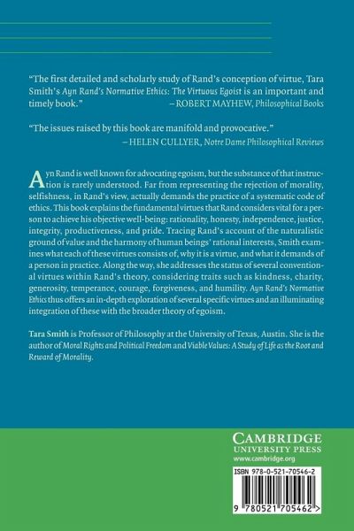 Ayn Rand is well known for advocating egoism, but the substance of that instruction is rarely understood. Far from representing the rejection of morality, selfishness, in Rand's view, actually demands the practice of a systematic code of ethics. This book explains the fundamental virtues that Rand considers vital for a person to achieve his objective well-being: rationality, honesty, independence, justice, integrity, productiveness, and pride. Tracing Rand's account of the harmony of human beings' rational interests, Smith examines what each of these virtues consists of, why it is a virtue, and what it demands of a person in practice. Along the way she addresses the status of several conventional virtues within Rand's theory, considering traits such as kindness, charity, generosity, temperance, courage, forgiveness, and humility. Ayn Rand's Normative Ethics thus offers an in-depth exploration of several specific virtues and an illuminating integration of these with the broader theory of egoism.