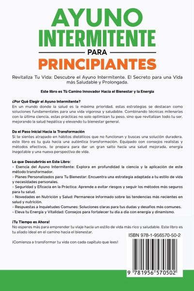 Revitaliza Tu Vida: Descubre el Ayuno Intermitente. El Secreto para una Vida más Saludable y Prolongada. Este libro es Tú Camino Innovador Hacia el Bienestar y la Energía ¿Por Qué Elegir el Ayuno Intermitente? En un mundo donde la salud es la máxima prioridad, estas estrategias se destacan como soluciones fundamentales para una vida vigorosa y saludable. Combinando técnicas milenarias con la última ciencia, estas prácticas no solo optimizan tu peso, sino que revitalizan todo tu ser, mejorando la salud hepática y elevando tu bienestar general. Da el Paso Inicial Hacia la Transformación Si te sientes atrapado en hábitos dietéticos que no funcionan y buscas una solución duradera, este libro es tu guía hacia una auténtica transformación. Equipado con consejos realistas y métodos efectivos, te prepara para dar un gran salto hacia una salud mejorada, energía inagotable y una nueva perspectiva de vida. Lo que Descubrirás en Este Libro: Esencia del Ayuno Intermitente: Explora en profundidad la ciencia y la aplicación de este método transformador. Planes Personalizados para Tu Bienestar: Encuentra una estrategia adaptada a tu estilo de vida y necesidades personales. Seguridad y Eficacia en la Práctica: Aprende a evitar riesgos y seguir los métodos más seguros para tu salud. Novedades en Nutrición y Salud: Permanece informado sobre las tendencias más recientes en salud y nutrición. Respuestas a Inquietudes Comunes: Soluciones claras para tus dudas y desafíos más comunes. Eleva tu Energía y Vitalidad: Consejos para fortalecer tu día a día con energía y dinamismo. ¡Tu Tiempo es Ahora! No esperes más para emprender tu viaje hacia un estilo de vida más rico y saludable. Este libro es tu aliado ideal en el camino hacia el bienestar. Haz clic y consigue tu copia hoy. ¡Comienza a transformar tu vida con cada capítulo que lees!