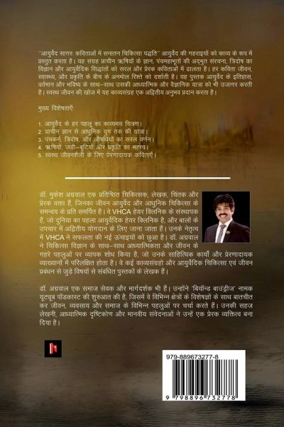 "Ayurveda Sagar: Sanatan Chikitsa Praddha in Poetry" presents the depths of Ayurveda in poetic form. This collection presents the wisdom of ancient sages, the amazing composition of Pancha Mahabhutas, the science of Tridosha and Ayurvedic principles in simple and inspiring poems. Each poem depicts the precious relationship between life, health, and nature. This book highlights the history, present and future of Ayurveda along with its spiritual and scientific journey. This collection of poems provides a unique experience in the pursuit of healthy living. Key Features: 1. Poetic depiction of every aspect of Ayurveda. 2. Journey from ancient knowledge to the modern era. 3. Simple description of Panchkarma, Tridosha, and medicines. 4. Importance of sages, herbs and nature. 5. Inspirational poems for a healthy lifestyle.