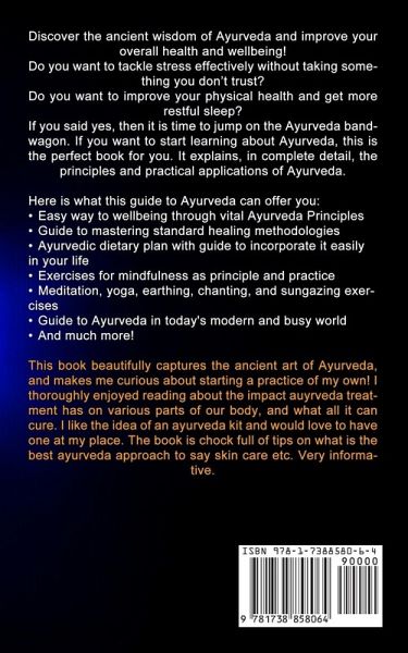 Discover the ancient wisdom of Ayurveda and improve your overall health and wellbeing! Do you want to tackle stress effectively without taking something you don't trust? Do you want to improve your physical health and get more restful sleep? If you said yes, then it is time to jump on the Ayurveda bandwagon. If you want to start learning about Ayurveda, this is the perfect book for you. It explains, in complete detail, the principles and practical applications of Ayurveda. Here is what this guide to Ayurveda can offer you: * Easy way to wellbeing through vital Ayurveda Principles * Guide to mastering standard healing methodologies * Ayurvedic dietary plan with guide to incorporate it easily in your life * Exercises for mindfulness as principle and practice * Meditation, yoga, earthing, chanting, and sungazing exercises * Guide to Ayurveda in today's modern and busy world * And much more! This book beautifully captures the ancient art of Ayurveda, and makes me curious about starting a practice of my own! I thoroughly enjoyed reading about the impact auyrveda treatment has on various parts of our body, and what all it can cure. I like the idea of an ayurveda kit and would love to have one at my place. The book is chock full of tips on what is the best ayurveda approach to say skin care etc. Very informative.