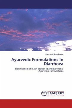 Diarrhoeal disease is a leading cause of mortality and morbidity in developing countries. World Health Organization in Diarrhoeal Disease Control Programme has given a special emphasis on the use of traditional medicines in the control and management of diarrhoea. Mebarid syrup, Enterocin syrup and Kutajarishta syrup are Ayurvedic formulations, consist of medicinal herbs which are indicated in diarrhoea and dysentery. Antidiarrhoeal effect of Mebarid, Enterocin, Kutajarishta alone and in combination with aqueous Black pepper extract were subjected to pharmacological evaluation. Antidiarrhoeal effect was evaluated in castor oil and magnesium sulphate induced diarrhoea while antimotility and antisecretory effect was evaluated in charcoal meal test and castor oil induced intestinal secretions in mice. Thus book provides the information about mechanisms of antidiarrhoeal activity of Ayurvedic formulation. Aqueous Black pepper extract produced a significant increase in the antidiarrhoeal, antimotility, and antisecretory effect of Mebarid, Enterocin, Kutajarishta explaining the significance of Black pepper in Ayurvedic antidiarrhoeal formulation.