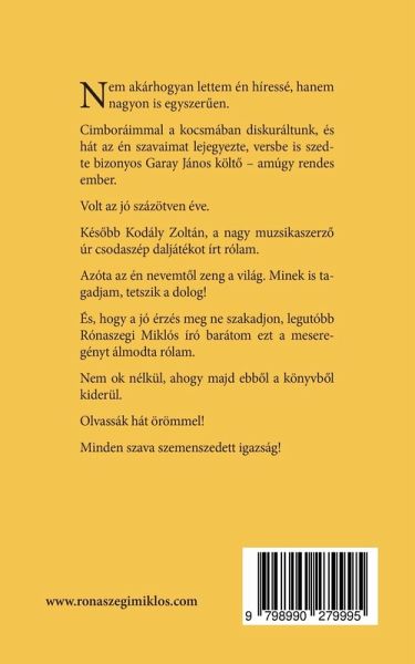 Nem akárhogyan lettem én híressé, hanem nagyon is egyszer¿en. Cimboráimmal a kocsmában diskuráltunk, és hát az én szavaimat lejegyezte, versbe is szedte bizonyos Garay János költ¿ - amúgy rendes ember. Volt az jó százötven éve. Kés¿bb Kodály Zoltán, a nagy muzsikaszerz¿ úr csodaszép daljátékot írt rólam. Azóta az én nevemt¿l zeng a világ. Minek is tagadjam, tetszik a dolog! És, hogy a jó érzés meg ne szakadjon, legutóbb Rónaszegi Miklós író barátom ezt a meseregényt álmodta rólam. Nem ok nélkül, ahogy majd ebb¿l a könyvb¿l kiderül. Olvassák hát örömmel! Minden szava szemenszedett igazság!