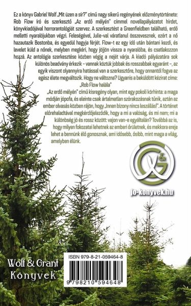 Ez a könyv Gabriel Wolf ¿Mit üzen a sír?" cím¿ nagy siker¿ horrorregényének el¿zménytörténete: Rob Flow író és szerkeszt¿ ¿Az erd¿ mélyén" címmel novellapályázatot hirdet, könyvkiadójával horrorantológiát szervez. A szerkesztést a Greenfieldben található, erd¿ melletti nyaralójukban végzi. Feleségével, Julie-val váratlanul összevesznek, ezért a n¿ hazautazik Bostonba, és egyedül hagyja férjét. Flow-t ez egy id¿ után bántani kezdi, és levelet küld a n¿nek, melyben megkéri, hogy jöjjön vissza a nyaralóba, és csatlakozzon hozzá. Az antológia szerkesztése közben végig a nejét várja. A kiadó pályázatára sok különös beadvány érkezik - vannak köztük jobbak és rosszabbak egyaránt -, az egyik viszont olyannyira hatással van a szerkeszt¿re, hogy onnantól fogva az egész élete megváltozik. Hogy ne változna? Ugyanis a beküldött kézirat címe: ¿Rob Flow halála" ¿Az erd¿ mélyén" cím¿ regény olyan, mint egy pokoli körhinta: a maga módján jópofa, és eleinte csak ártalmatlan szórakozásnak t¿nik, aztán az ember olvasás közben rájön, hogy ¿Innen bizony nincs leszállás!". A történet el¿rehaladtával megkérd¿jelez¿dik, hogy a mi a valóság, és mi nem; mi a különbség jó és rossz között: vajon van-e egyáltalán? Továbbá az is, hogy milyen fokozatai lehetnek az emberi ¿rületnek, és mekkora ereje lehet a bennünk él¿ gonosznak, ami id¿sebb, ¿sibb, mint maga a világ, amelyben élünk.