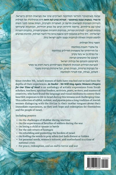 Since October 7th, Israeli women of faith have reached out to God from the depths of their experiences. In both English and Hebrew side-by-side, Az Nashir - We Will Sing Again: Women's Prayers for Our Time of Need is an anthology of the artistic expression of Torah scholars, teachers, spiritual leaders, activists, poets, writers, and masters of creativity, who found the language and visual medium to express their heartfelt responses to life in Israel at this tenuous and challenging time. This collection of prayers: tefillot, techinot, and piyutim joins a long tradition of Jewish women dialoguing with the Divine about their immediate experiences, in their mother tongues, as they seek hope and redemption for themselves and the people of Israel. Including prayers: On the challenges of Shabbat during wartime On the experiences of families of soldiers during the war On losing a child or spouse in battle For the hostages to return home On rebuilding and protecting the borders of Israel On finding the words to pray when God seems distant or hidden For personal needs, women's mitzvot, and motherhood in a time of national crisis For peace, redemption, and an end to terror and war