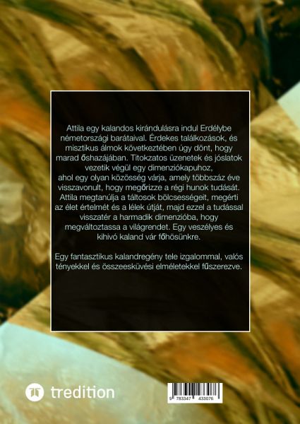 Attila egy kalandos kirándulásra indul Erdélybe németországi barátaival. Érdekes találkozások, és misztikus álmok következtében úgy dönt, hogy marad öshazájában. Titokzatos üzenetek és jóslatok vezetik végül egy dimenziókapuhoz, ahol egy olyan közösség várja, amely többszáz éve visszavonult, hogy megörizze a régi hunok tudását. Attila megtanúlja a táltosok bölcsességeit, megérti az élet értelmét és a lélek útját, majd ezzel a tudással visszatér a harmadik dimenzióba, hogy megváltoztassa a világrendet. Egy veszélyes és kihivó kaland vár föhösünkre. Egy fantasztikus kalandregény tele izgalommal, valós tényekkel és összeesküvési elméletekkel f szerezve.