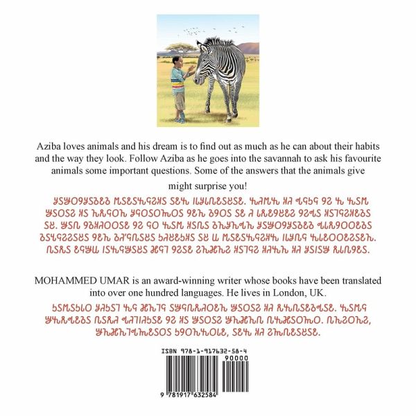 Abdulaziz loves animals and his dream is to find out as much as he can about their habits and the way they look. Follow Abdulaziz as he goes into the savannah to ask his favourite animals some important questions. Some of the answers that the animals give might surprise you! A bilingual edition of this book is available in the following languages: Afar, Afrikaans, Amharic, Asante, Efik, Ewe, Gikuyu, Hausa, Ibibio, Igbo, Kikongo, Kinyarwanda, Kirundi, Lingala, Luganda, Ndebele, Oromo, Oshiwambo, Shona, Sesotho, Setswana, Somali, Somali (Osmanya Script) Swahili, Tigrinya, Xhosa, Yoruba, Zulu.